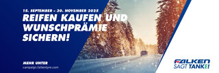 Für den Kauf eines Satzes Falken Winter- oder Ganzjahresreifen (4 Stück ab 16 Zoll, LKW-Reifen ausgenommen) schenkt Falken Ihnen eine Aral